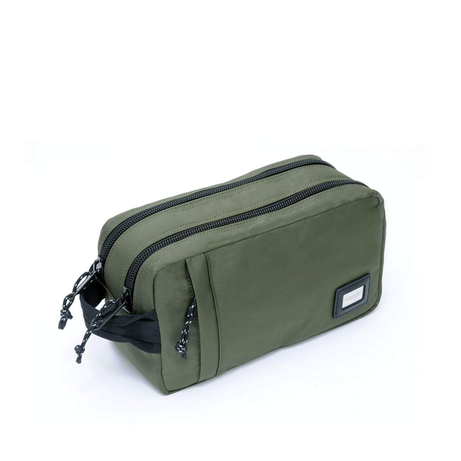Beauty in nylon rinforzato. 2 tasche con fodera in colore camouflage. All’interno 2 tasche. Maniglia esterna. Tasca esterna con zip.