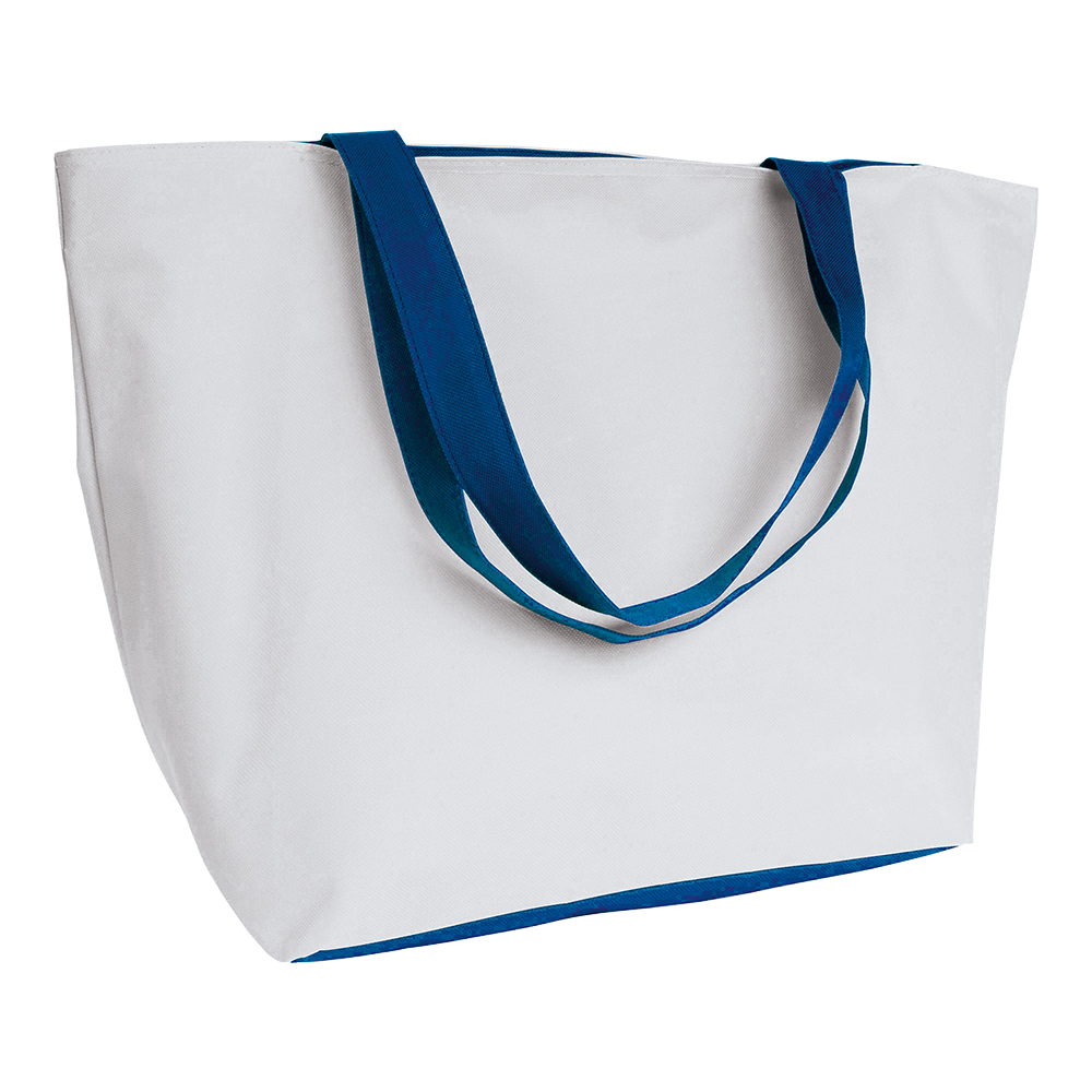 Borsa mare bicolore in poliestere 600D, manici lunghi, tasca interna e chiusure zip.