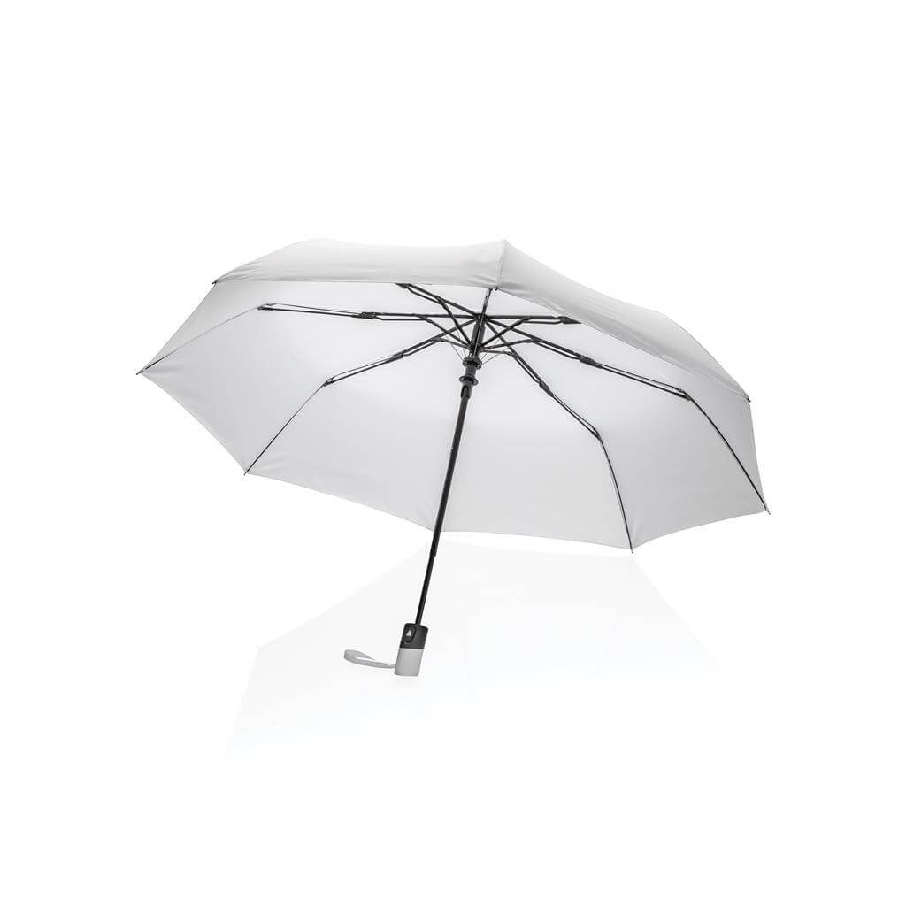 Questo ombrello Impact rPET pongee 190T è realizzato con traccianti AWARE™. Struttura in metallo, stecche in fibra di vetro e manico in ABS. Antivento. Questo ombrello è realizzato con 7,7 bottiglie in PET da 500 ml e sono stati risparmiati 4,6L d’acqua.
