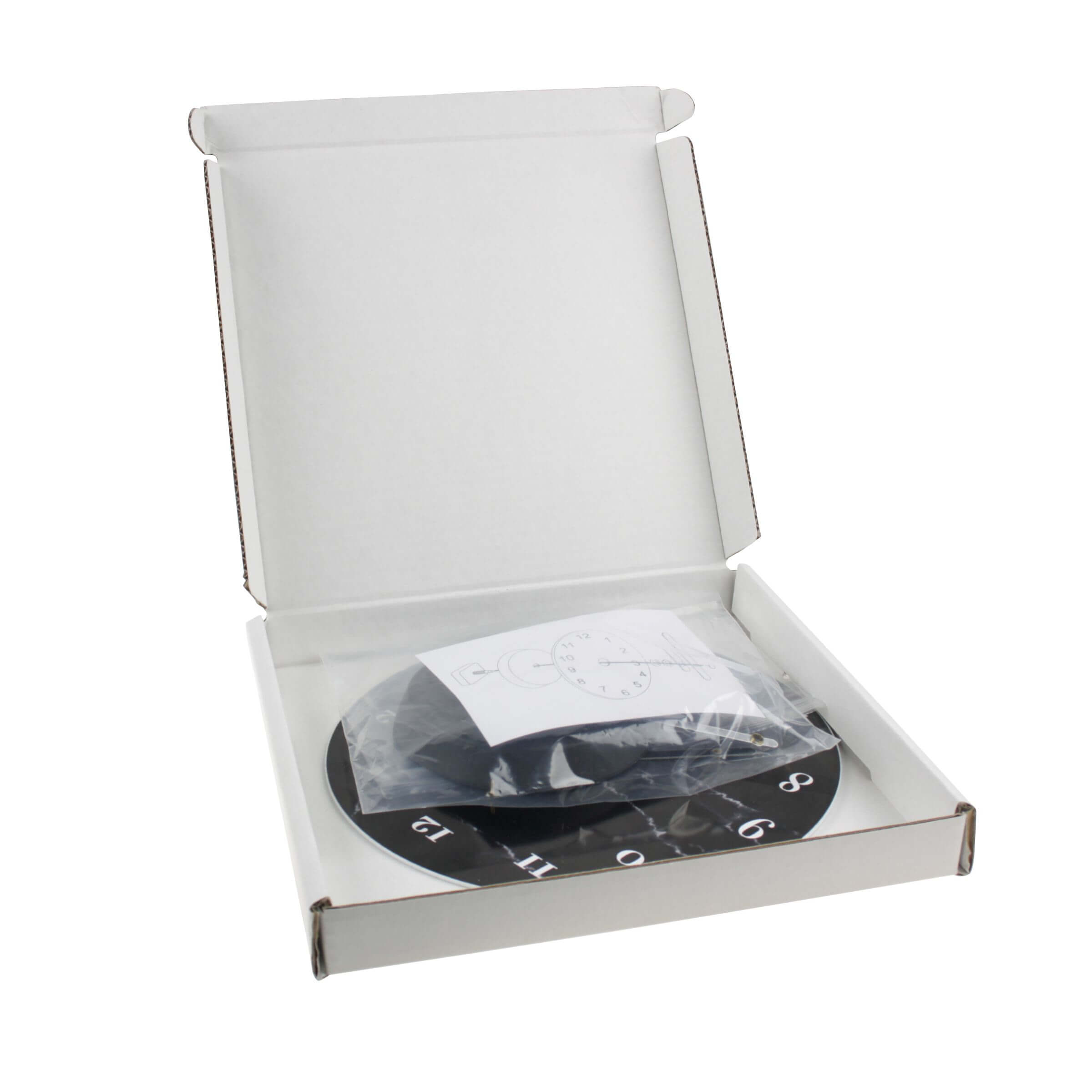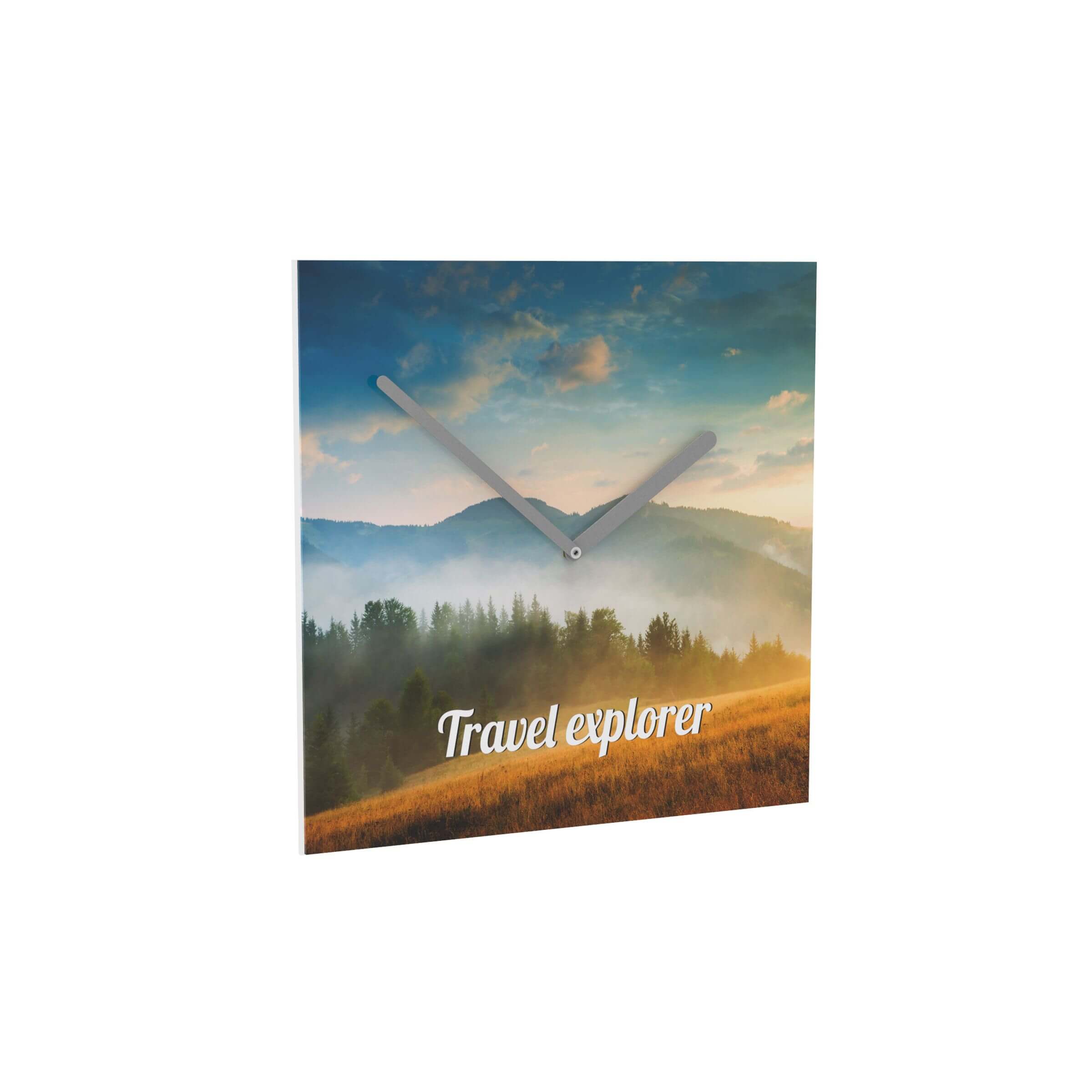 L’orologio da parete DYO (design your own) è realizzabile in qualsiasi forma e personalizzato in quadricromia con stampa digitale diretta. Le lancette sono fornite a parte. Si possono scegliere nere oppure argento. L’orologio non è dotato di vetro.