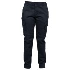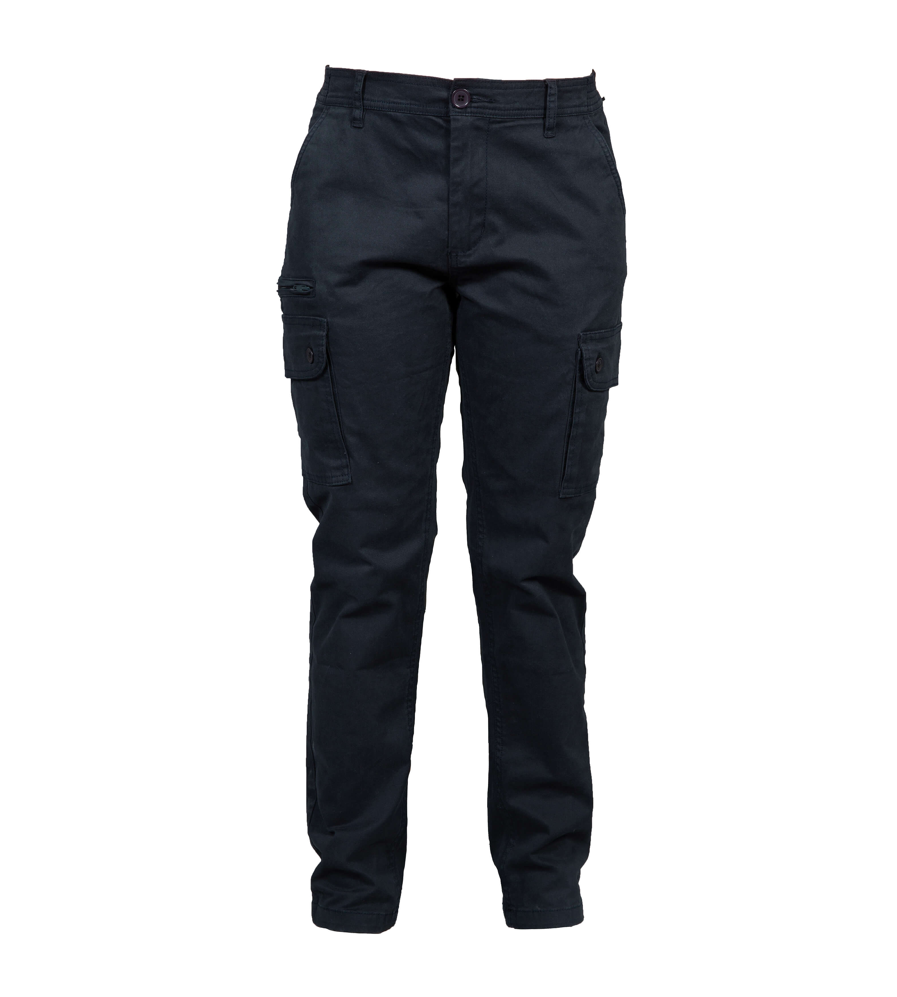 Pantalone multitasche elasticizzato (98% cotone – 2% elastane). Tessuto prelavato. Due tasche anteriori, due tasche laterali con bottoni, una tasca laterale con zip coperta, una tasca portametro e due tasche posteriori con bottoni.