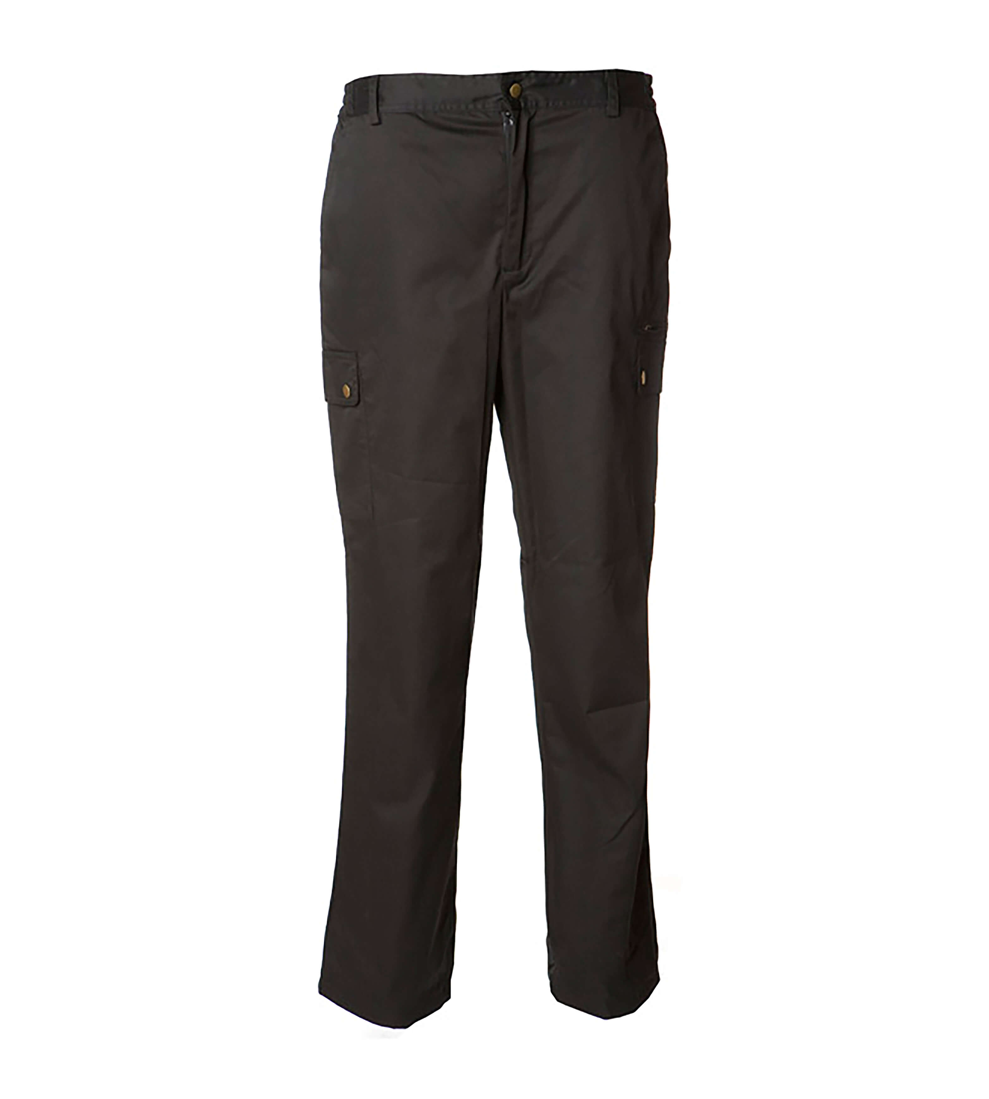 Pantalone multitasche invernale foderato (65% poliestere – 35% cotone). Fodera in flanella (100% cotone). Elastici in vita sui fianchi. Due tasche anteriori, due tasche laterali con bottoni automatici, una tasca laterale con zip, una tasca portametro o portautensili e due tasche posteriori con bottoni automatici.