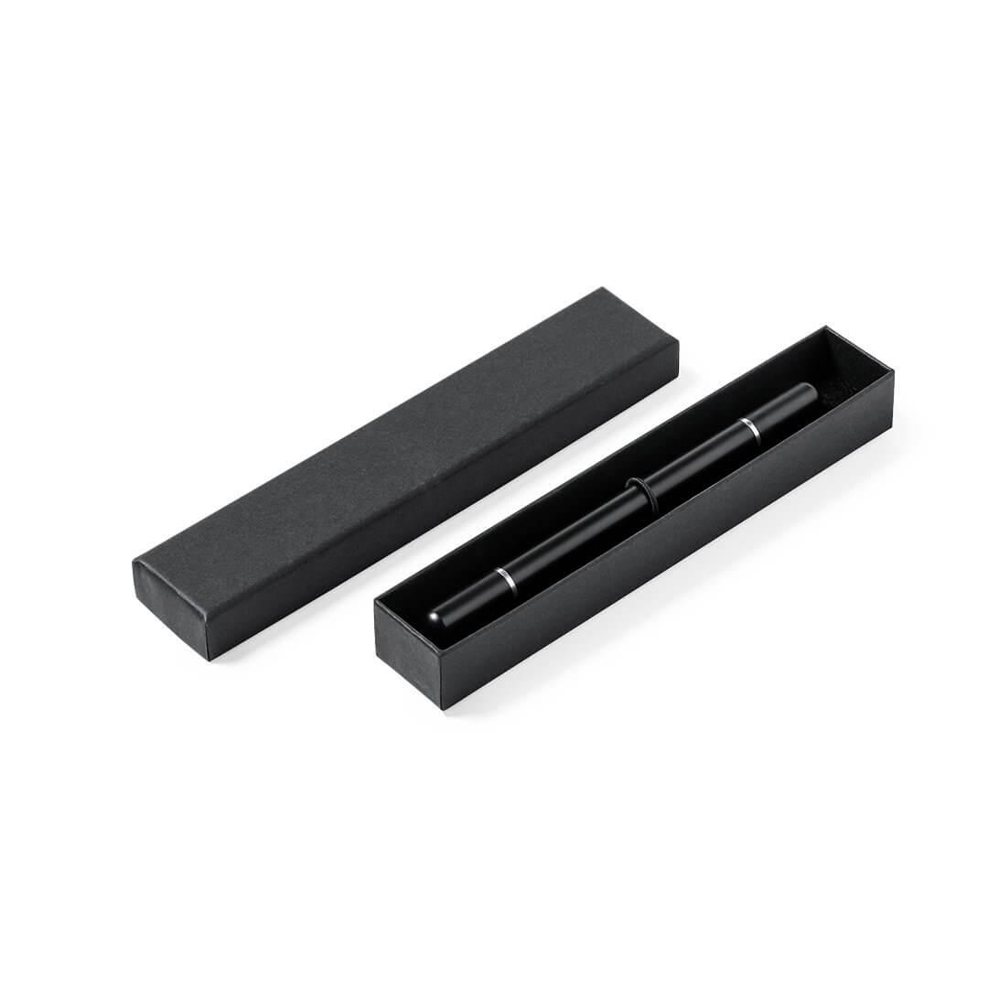 Elegante set in alluminio confezionato in astuccio nero composto da penna a sfera e matita eterna, entrambe con chiusura a cappuccio. il puntale in grafite della matita non necessita di essere temperato.