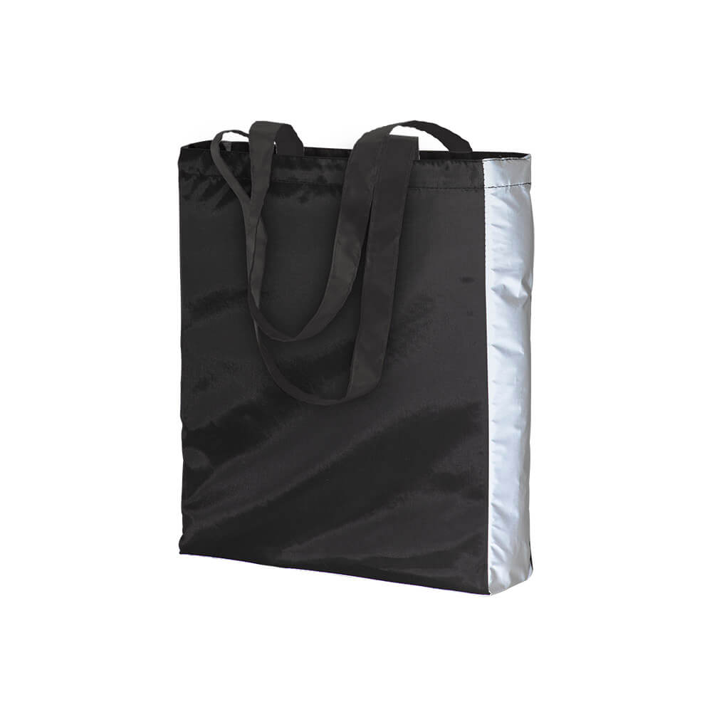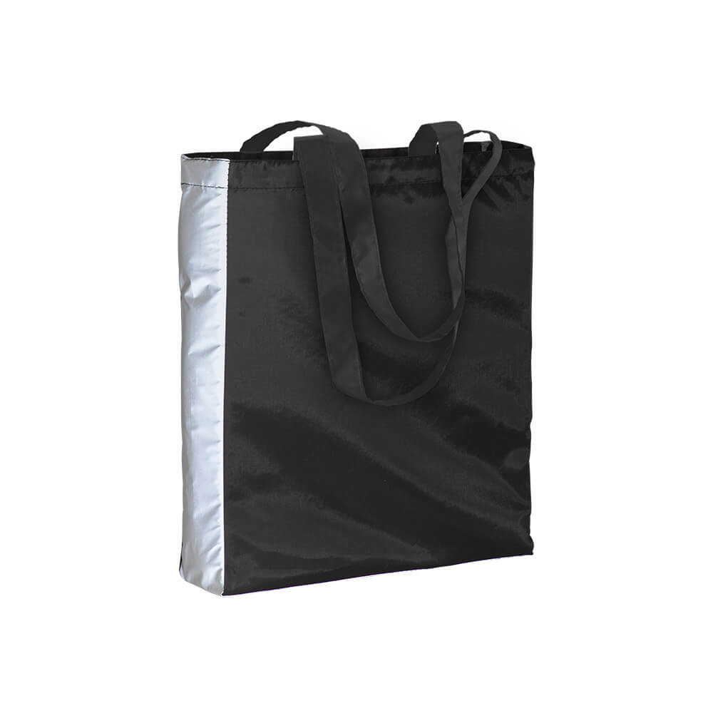Shopper in poliestere 210T con lato catarifrangente. Manici lunghi e soffietto.