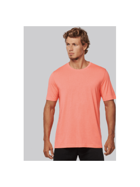 T-shirt uomo 100% Poliestere. Tessuto leggero ad asciugatura rapida. Maniche raglan con cuciture in contrasto. Cuciture a doppio ago alle maniche e sul fondo. Certificato STANDARD 100 by OEKO-TEX® N° CQ 1007/7, IFTH.